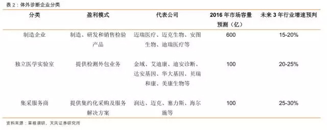體外診斷上市公司分為三類模式,發展路徑及特點各有不同。根據不同公司的盈利模式,分為制造業、第三方醫學實驗室和集采供應商,不同模式的特點和發展趨勢各有不同。
