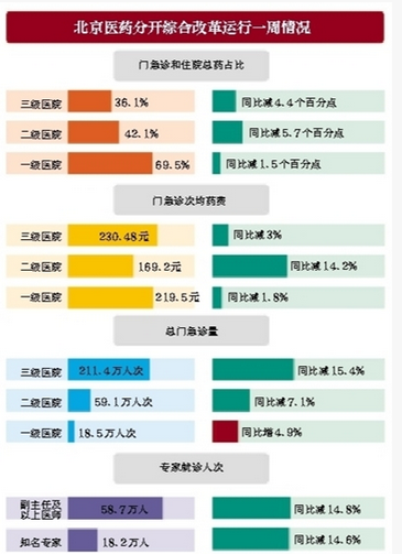 北京市衛計委稱,監測結果顯示,各醫療機構藥占比和藥費均呈下降趨勢。