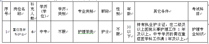 為了充實我院專業技術力量,現將招聘6名合同制護理人員。具體招聘崗位內容及要求如下:
