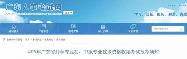 近日,廣東人事考試網發布了《2019年廣東省藥學專業初、中級專業技術資格收尾考試報考須知》的通知。
