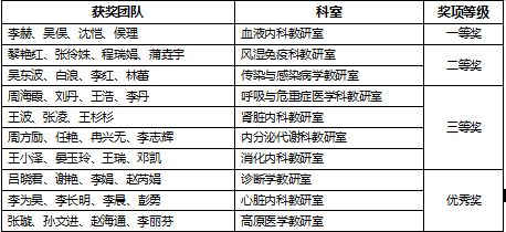 經過評委組的嚴謹評審與綜合打分,血液內科教研室李赫、吳俁、沈愷、侯理團隊榮獲一等獎,其他9個團隊分獲二、三等獎和優秀獎。