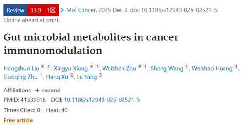 近日,我院泌尿外科楊璐教授團隊在國際腫瘤學權威期刊Molecular Cancer上發表題為“Gut microbial metabolites in cancer immunomodulation”的綜述文章。文章以創新性視角系統梳理腸道菌群代謝物在腫瘤免疫調控中的作用機制,首次提出“代謝物–免疫通路–腫瘤”的整合框架。該研究不再停留于“菌群豐度”與腫瘤結局的簡單關聯,而是將以往零散的研究證據重構為可量化、可干預的代謝信號網絡,幫助科研界在更高層面理解微生態如何塑造“冷”與“熱”腫瘤,并為尋找新的免疫調節靶點、設計代謝物導向的聯合治療策略提供了系統的理論支撐和圖譜式參考。