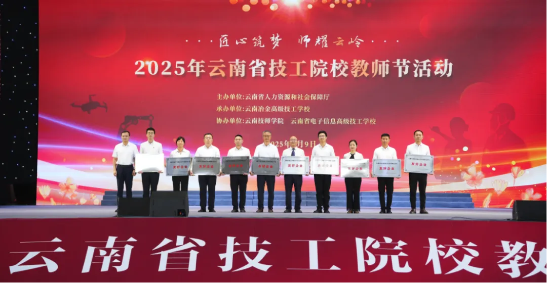 9月9日,由云南省人力資源和社會保障廳主辦的“匠心筑夢,師耀云嶺”2025年云南省技工院校教師節活動在云南冶金高級技工學校隆重舉行。云南白藥集團作為長期支持云南省技工教育、深度參與校企合作的優秀企業代表,受邀出席活動并獲頒云南省技工院校2025年度校企合作“友好企業”榮譽稱號。這一榮譽不僅是對云南白藥集團多年來在技能人才培養和產教融合方面工作的充分肯定,更是對其持續踐行龍頭企業社會責任、服務地方經濟社會發展的高度認可。