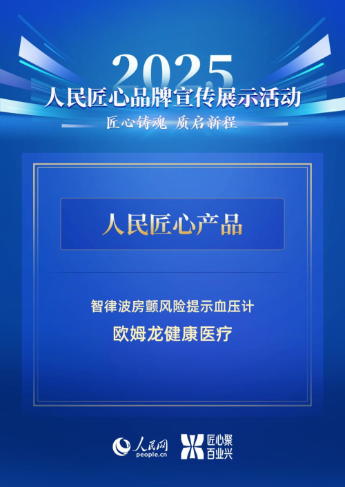 “人民匠心產品”案例源于人民網主辦的2025年度“匠心鑄魂 質啟新程”主題宣傳展示活動。該評選歷時兩個月,聚焦于產品創新、技術突破、品牌與服務體系建設等方面的高質量實踐,被視為推動“中國制造”向“中國創造”升級的重要權威活動。此次獲評,既是對歐姆龍“智律波”房顫血壓計產品力的高度認可,也體現了歐姆龍在預防醫療與智慧健康管理領域的長期積累與綜合實力。